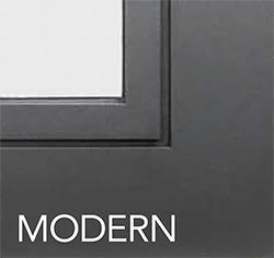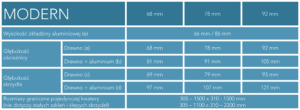 – nowoczesny profil skrzydła, który zlicowany jest z profilem ramy okiennej tworząc wizualnie jedną płaszczyznę z mocno zaznaczonym pośrodku rantem. Specjalny kształt skrzydła aluminiowego, który powoduje wysunięcie szyby o 15 mm do przodu w stosunku do rozwiązań konwencjonalnych, co umożliwia zastosowanie szerszego pakietu szybowego przy mniejszym przekroju drewna. Profil MODERN to dostosowanie do nowoczesnych projektów architektonicznych oraz otwarcie się na nowy design w stolarce otworowej.